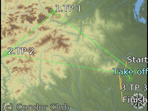 | Take off: | Take off (208 m.) Airport | Start: | Start (232 m.) Heading: 305° for 5.2 km,