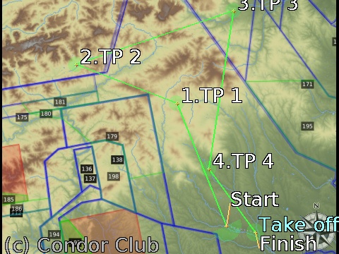 Coords: 47.33.388N / 15.19.295E Classic turnpoint, min. height: 0 m., max.: 10,000 m. angle: 360°, radius: 500 m. |  | | TP 3: | Ternitz (464 m.) Heading: 67° for 53.8 km,