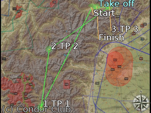 Coords: 45.17.499N / 6.41.599E Classic turnpoint, min. height: 0 m., max.: 10,000 m. angle: 360°, radius: 1,500 m. |  | | TP 3: | Pflicht WP (526 m.) Heading: 53° for 83.7 km,