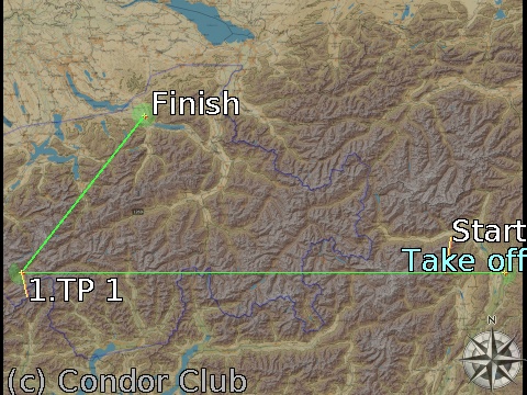 Coords: 46.27.607N / 11.19.582E Classic turnpoint, min. height: 0 m., max.: 2,300 m. angle: 180°, radius: 3,000 m. |  | TP 1: | Muenster (1,330 m.) Heading: 270° for 235.2 km,